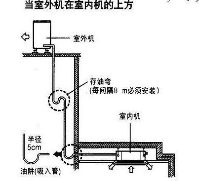 3、在室外機(jī)往下翻的地方做一個“止回灣”;