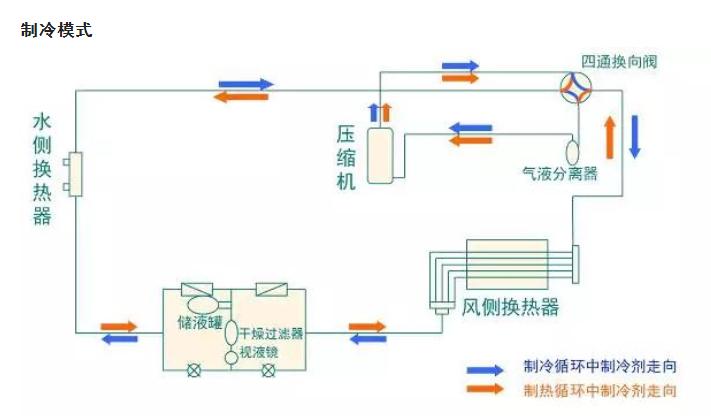 風(fēng)冷熱泵是以空氣作為冷熱源的熱泵系統(tǒng)。夏季制冷工況下,室外機(jī)扮演冷凝器角色,將壓縮機(jī)輸出的高溫高壓制冷劑冷卻放熱;室內(nèi)機(jī)則作為蒸發(fā)器,促使低溫低壓制冷劑蒸發(fā)吸熱,實(shí)現(xiàn)降溫除濕效果。冬季供暖時(shí),系統(tǒng)通過切換運(yùn)行模式,室外機(jī)轉(zhuǎn)為蒸發(fā)器吸收空氣熱量,室內(nèi)機(jī)變?yōu)槔淠飨蚴覂?nèi)釋放熱量,完成制熱過程。這一過程中,風(fēng)冷熱泵僅需通過四通換向閥的切換,即可完成制冷與供暖工況的轉(zhuǎn)換,無需額外配置其他冷熱源,顯著提升了安裝與使用的便捷性。此外,因其采用電力驅(qū)動(dòng),僅需消耗少量電能,即可從空氣中提取數(shù)倍于輸入功的熱量,具備高能效比與低運(yùn)行成本的優(yōu)勢(shì)。