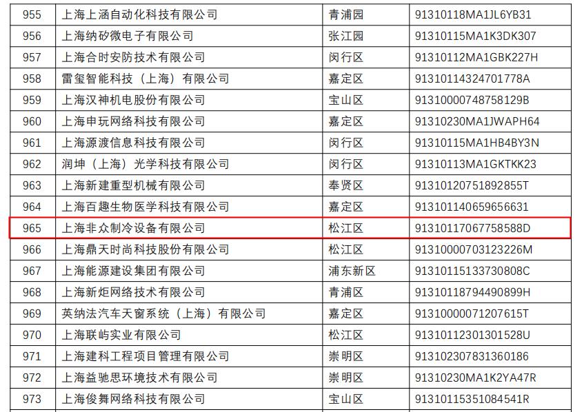 近日,根據科技部、財政部、國家稅務總局《高新技術企業認定管理辦法》(國科發火〔201632號)、《高新技術企業認定管理工作指引》(國科發火〔2016195號)、《上海市高新技術企業認定管理實施辦法》(滬科合〔202121號)的有關規定,經審查,現將上海非眾制冷設備有限公司等4123家符合認定條件的企業擬認定高新技術企業名單(見附件)予以公示。
