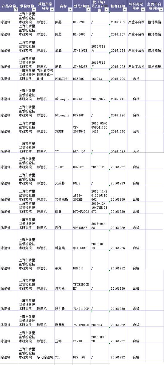 本次抽查的除濕機品牌包括貝菱、濕騰、PHILIPS、DēLonghi、SHARP、TCL、TOSOT、艾美特、艾普萊斯、德業(yè)、活仕、萊克、科立泰、尚朋堂、浦力適和亞都等21批次產(chǎn)品,其中,貝菱和濕騰旗下的兩款除濕機在抽查中檢測發(fā)現(xiàn)產(chǎn)品嚴重不合格,主要不合格項目為接地措施。
